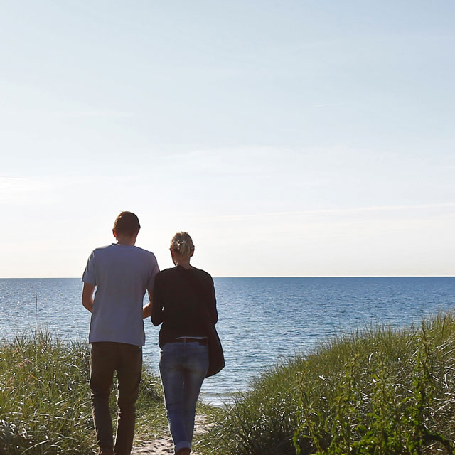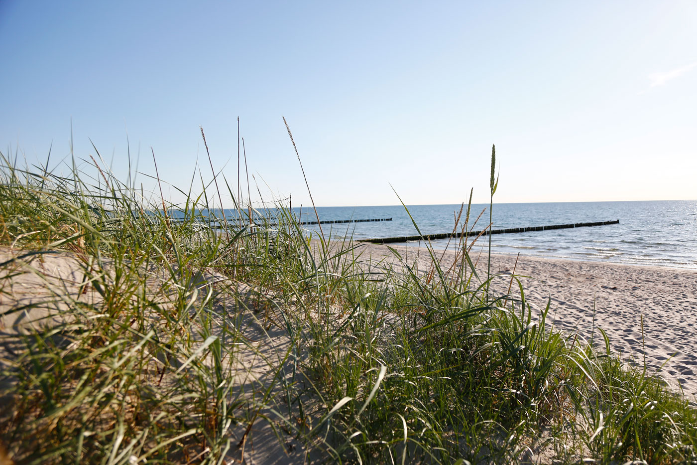 Die Finnhütten liegen direkt hinter den Dünen, man hört das Meer rauschen. Der Tag kann mit einem Bad in der Ostsee beginnen.